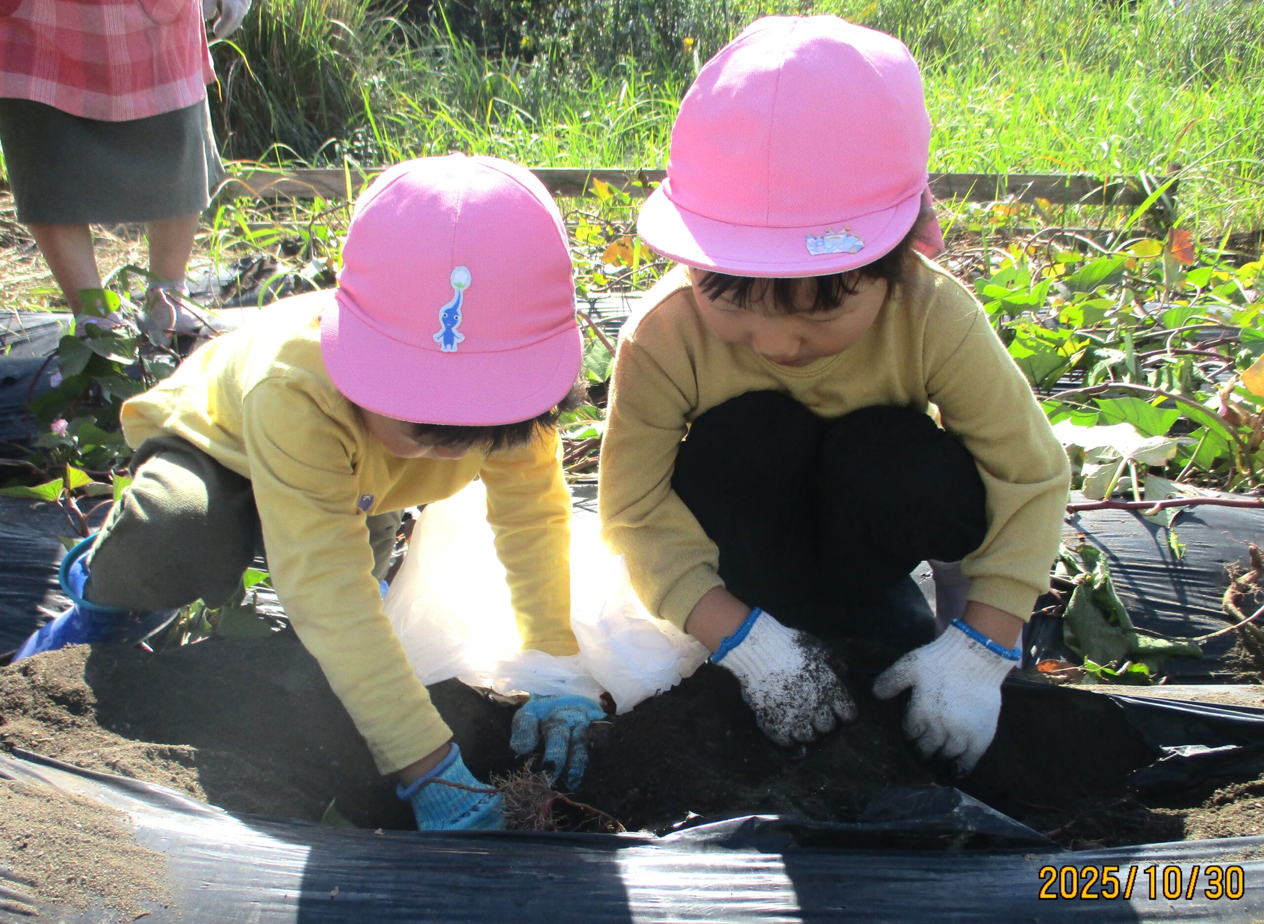 春につるさしをしたさつまいもをみんなで掘りに行きました!※写真はクリックまたは、タップしてからご覧ください。